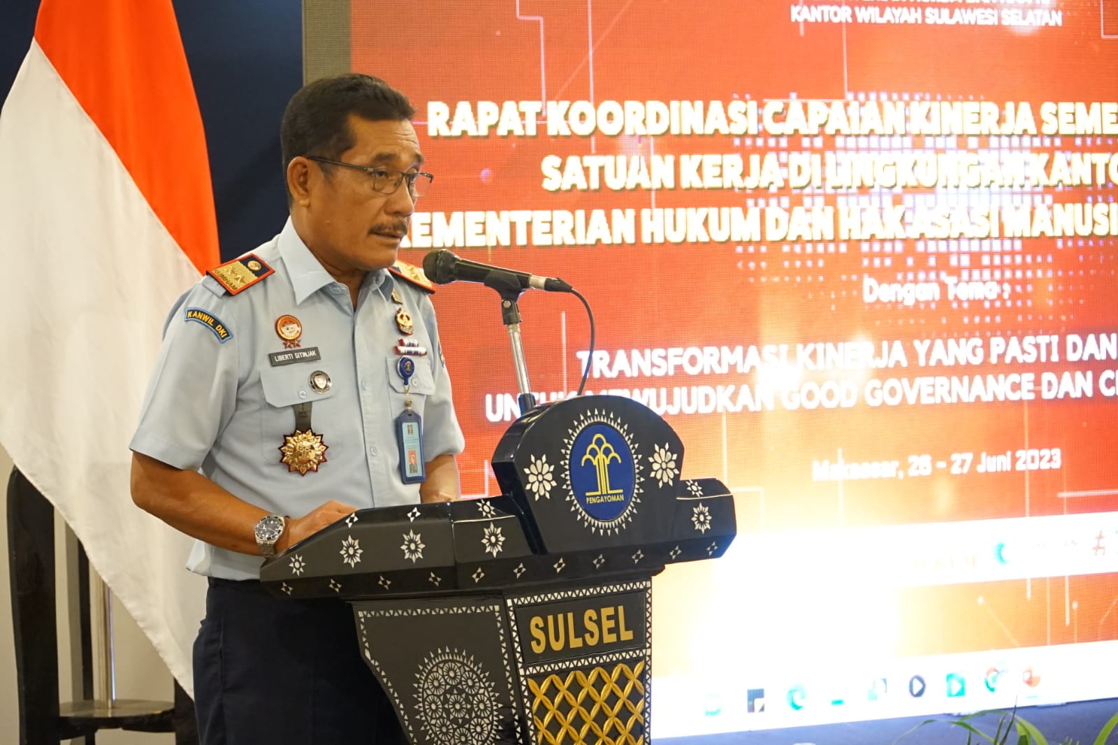 Hal ini diungkapkan Kakanwil Kemenkumham Sulsel Liberti Sitinjak di sela-sela membuka Rapat Koordinasi (Rakor) Capaian Kinerja Semester I Tahun 2023. Kegiatan ini bertujuan melaksanakan evaluasi pelaksanaan tugas dan fungsi satuan kerja.