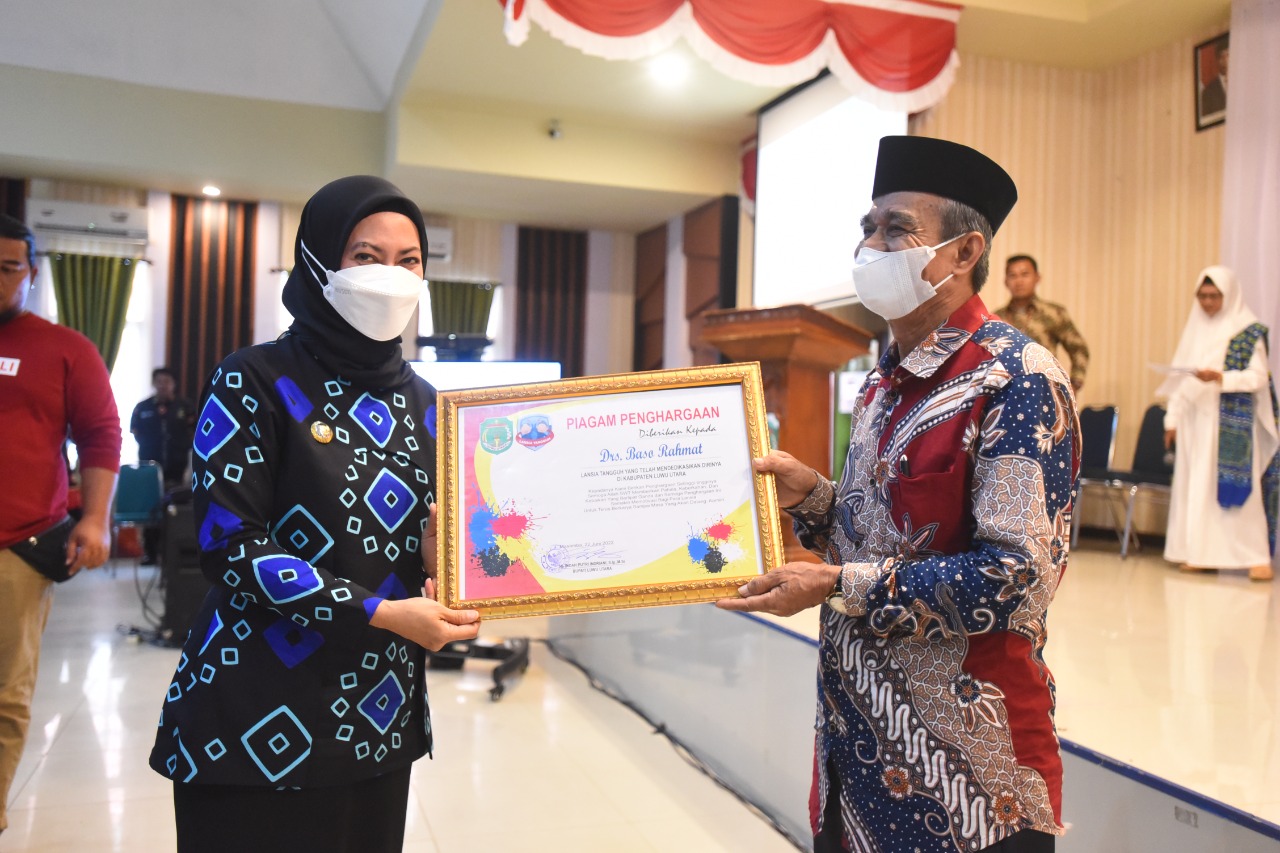 Penyerahan penghargaan diberikan saat Peringatan Hari Lanjut Usia Nasional (HLUN) ke-26 Tingkat Kabupaten Luwu Utara oleh orang nomor satu di Luwu Utara, Kamis (23/6) di Aula La Galigo.