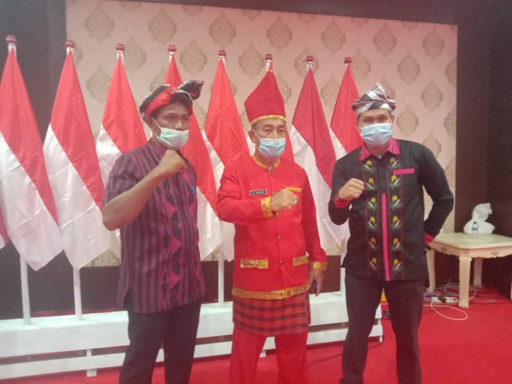 Kadispora Prov. Sultra (tengah) saat peringatan Sumpah Pemuda ke-92 di Rujab Gubernur Sultra, Rabu (28/10/2020). Foto: istimewa