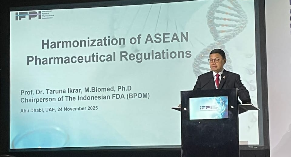 Kepala Badan Pengawas Obat dan Makanan (BPOM) RI, Prof Taruna Ikrar diutus negara-negara ASEAN untuk menghadiri International Forum of Pharmaceutical Inspectorates (IFPI) yang dilaksanakan di Abu Dhabi, Uni Emirat Arab, Senin (24/11/2025).