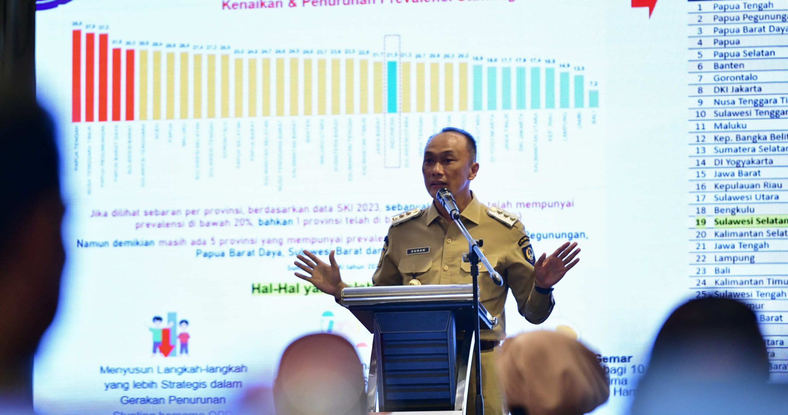 Berdasarkan hasil SKI 2023 prevalensi stunting provinsi Sulawesi Selatan 27,4 persen, naik 0,2 persen dari 27,2 persen hasil SSGI 2022.