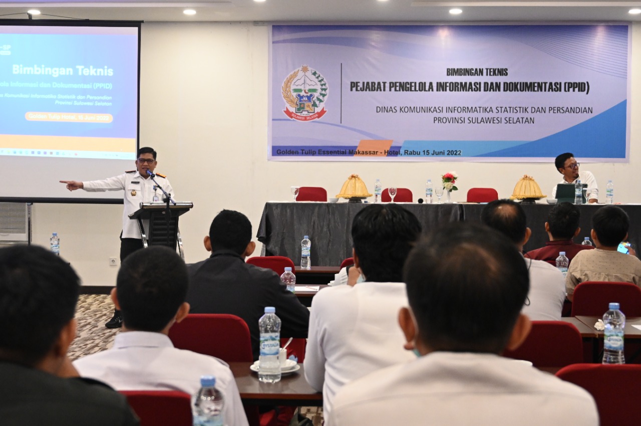 REPUBLIKNEWS.CO.ID, MAKASSAR — Guna memperkuat sinergi antar seluruh Pejabat Pengelola Informasi dan Dokumentasi (PPID) lingkup Provinsi Sulsel, Bidang Humas Diskominfo-SP Sulsel menggelar Bimbingan Teknis PPID di Hotel Golden Tulip Essential, Makassar, Rabu (15/06/2022). Kegiatan ini diikuti oleh seluruh PPID baik dari Kabupaten/Kota maupun dari OPD lingkup Provinsi Sulsel.