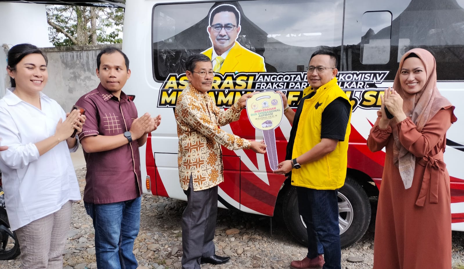 Bus operasional yang merupakan program aspirasinya itu diserahkan langsung oleh Muhammad Fauzi kepada Wakil Ketua Yayasan Kesehatan Gereja Toraja, Habel Pongsibidang di halaman kantor DPD II Golkar Luwu Utara.