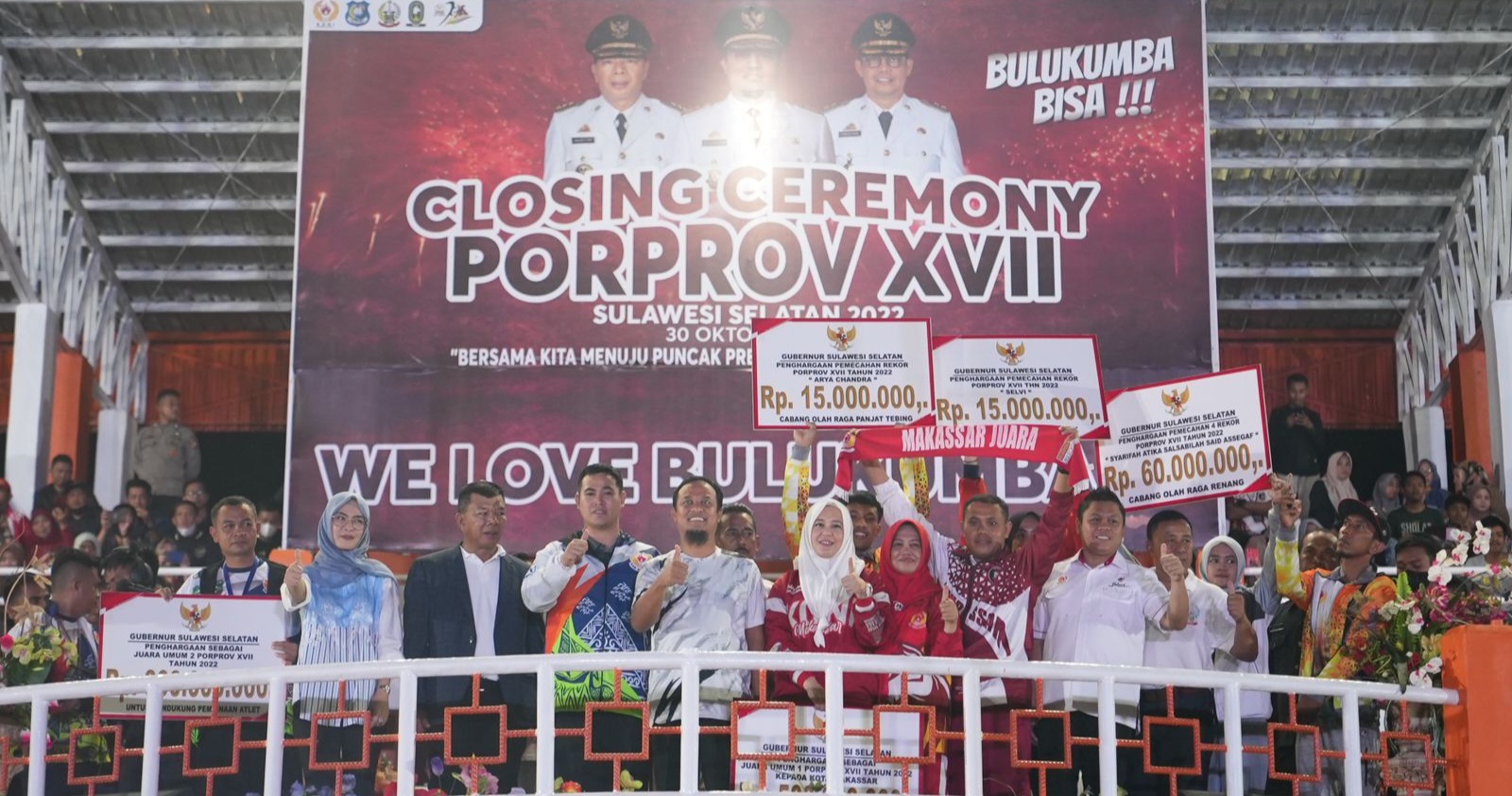 Penyerahan bonus itu dilakukan oleh Gubernur Sulsel Andi Sudirman Sulaiman pada Closing Ceremony Porprov Sulsel di Stadion Mini Bulukumba, Minggu (30/10/2022) malam.