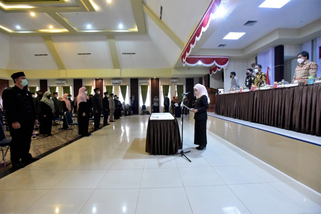 Pagi tadi Bupati Luwu Utara mengambil sumpah 199 pejabat lingkup Pemerintah Kabupaten Luwu Utara di Aula Laga Ligo kantor Bupati Luwu Utara Kamis (15/07/2021). Akan tetapi tidak semua pejabat dilantik secara langsung, tapi sebagian besar dilantik secara virtual mengiat saat ii masih dalam situasi pandemi Covid-19.