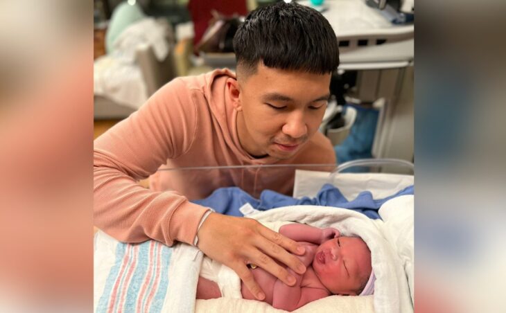Suami Nikita Willy, Indra Priawan bersama anak bayinua yang baru saja lahir di salah satu RS di Los Angeles, Amerika Serikat.