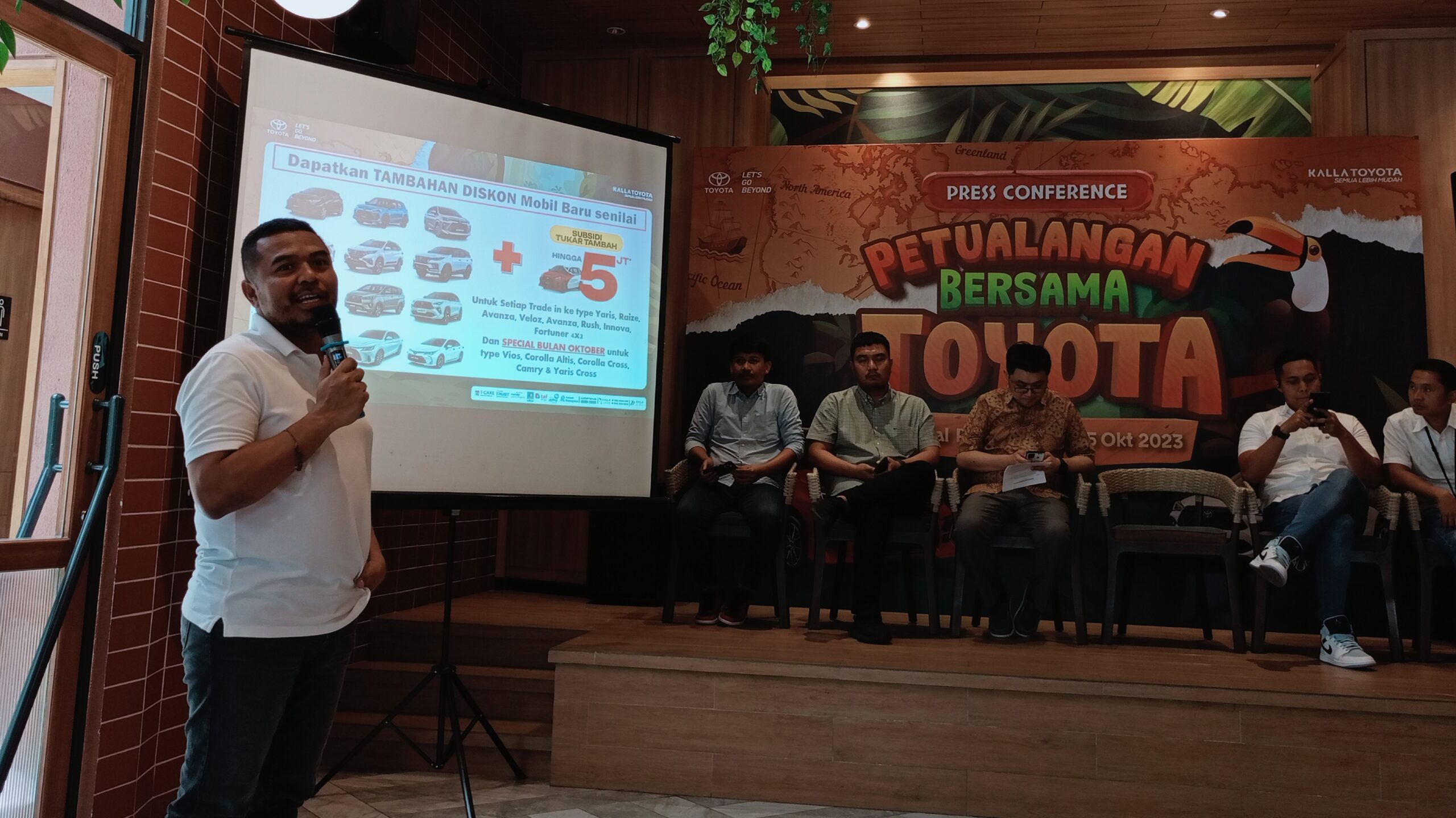 “Di pameran kita kali ini pelanggan dapat berburu promo menarik dalam membeli Toyota impiannya. Khusus 71 hadiah spesial yang kami siapkan ini dalam rangka merayakan HUT Kalla Group Ke-71 Tahun,” katanya di sela-sela Prescon Petualangan Bersama Kalla Toyota, di Goodfileds Makassar, Jalan Bontolempangan, Selasa, (10/10/2023).