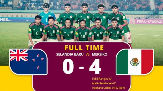 REPUBLIKNEWS.CO.ID, MAKASSAR — Menang besar 4-0 atas Selandia Baru di Grup F di Stadion Si Jalak Harupat Bandung, Sabtu (18/11/2023) petang, Meksiko berhasil mencatatkan diri sebagai tim terakhir yang melangkah ke babak 16 besar Piala Dunia U-17 di Indonesia.