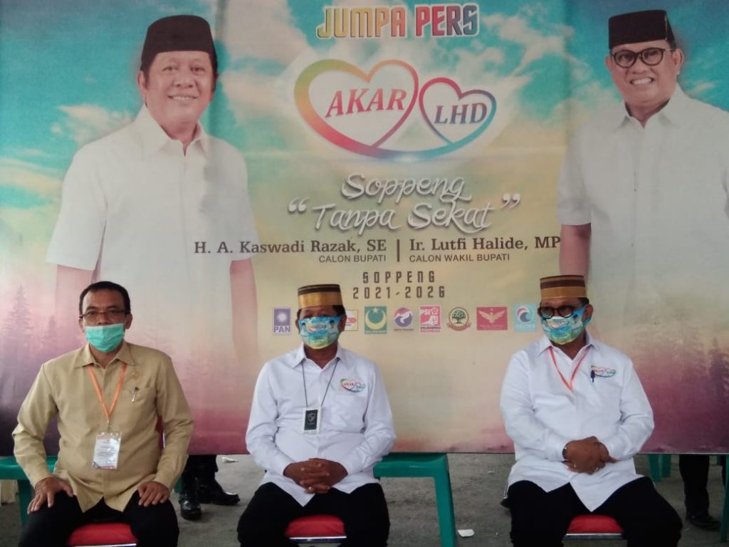 REPUBLIKNEWS.CO.ID, SOPPENG — Didampingi Ketua Tim Pemenangannya Saharuddin Adam, Akar-Lhd melakukan jumpa pers di kediaman pribadinya jalan Laburawung Watansoppeng, Kamis (24/09/2020).