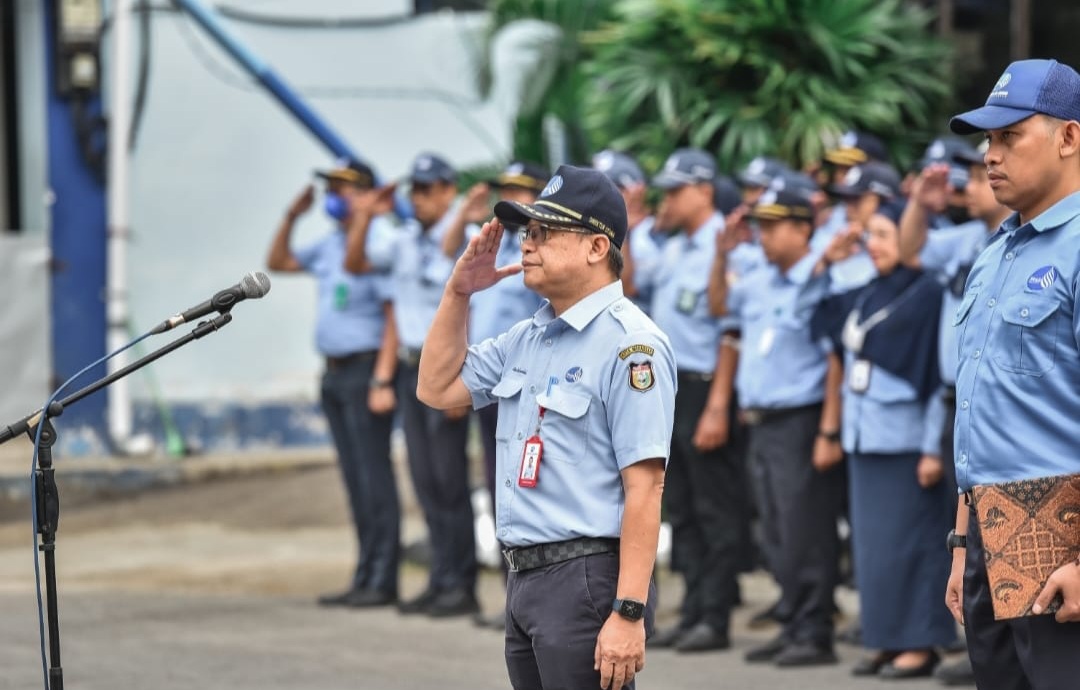 REPUBLIKNEWS.CO.ID, MAKASSAR — Penjabat Direktur Utama (Pj Dirut) Perusahaan Daerah (Perumda) Air Minum Kota Makassar, Beni Iskandar memimpin apel pagi pasca Iduladha 1443 Hijriah, pada Senin (11/07/2022) di Lapangan Upacara Perumda Air Minum Kota Makassar.