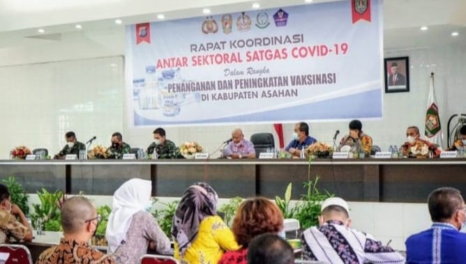 REPUBLIKNEWS.CO.ID, ASAHAN — Gugus Tugas Percepatan Penanganan Covid-19 Kabupaten Asahan menggelar Rapat Koordinasi Antar Sektoral Satgas Covid-19 dalam rangka penanganan dan peningkatan vaksin di Kabupaten Asahan, yang bertempat di Aula Melati Kantor Bupati Asahan, Kamis (01/04/2021).