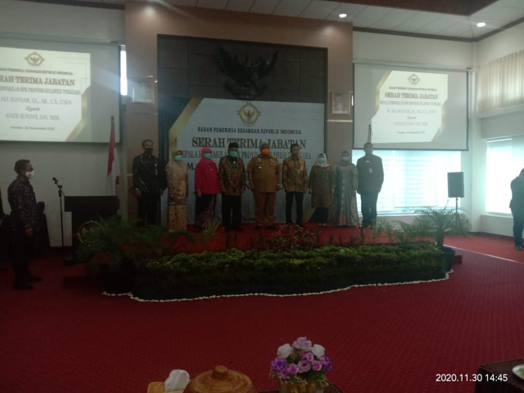 Hal itu ditandai dengan pelaksanaan serah terima jabatan (Sertijab) di Aula Kantor BPK RI Perwakilan Sultra yang dihadiri oleh Gubernur Sultra Ali Mazi, Anggota VI BPK RI Harry Azhar Aziz, Kapolda Sultra Irjen Pol Yan Sultra Indrajaya dan beberapa Kepala Daerah di Sultra, Senin (30/11/2020).