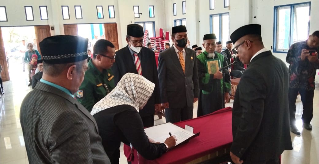 “Maka saat itu ditunda sampai keluar surat tersebut dan suratnya baru keluar kemarin (Kamis) dan hari ini kita Lantik,” ucapnya.