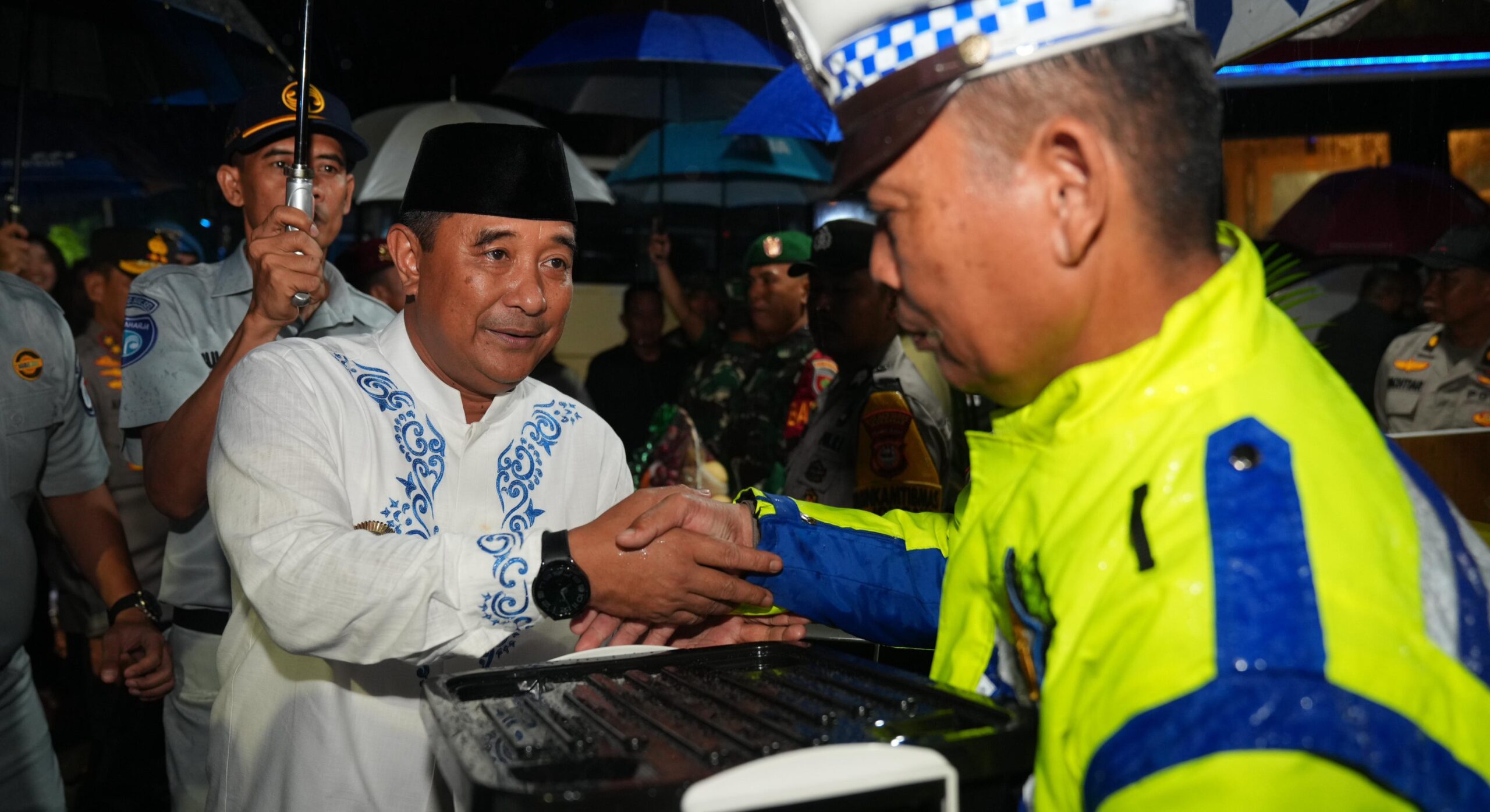 Kondisi hujan tidak mengurangi semangat melakukan peninjauan di dua lokasi strategis, yaitu di Pelabuhan dan Pos Terpadu Trans Studio yang merupakan pusat keramaian. Di pos terpadu, Pj Gubernur Bahtiar dan rombongan menyerahkan paket lebaran kepada petugas.