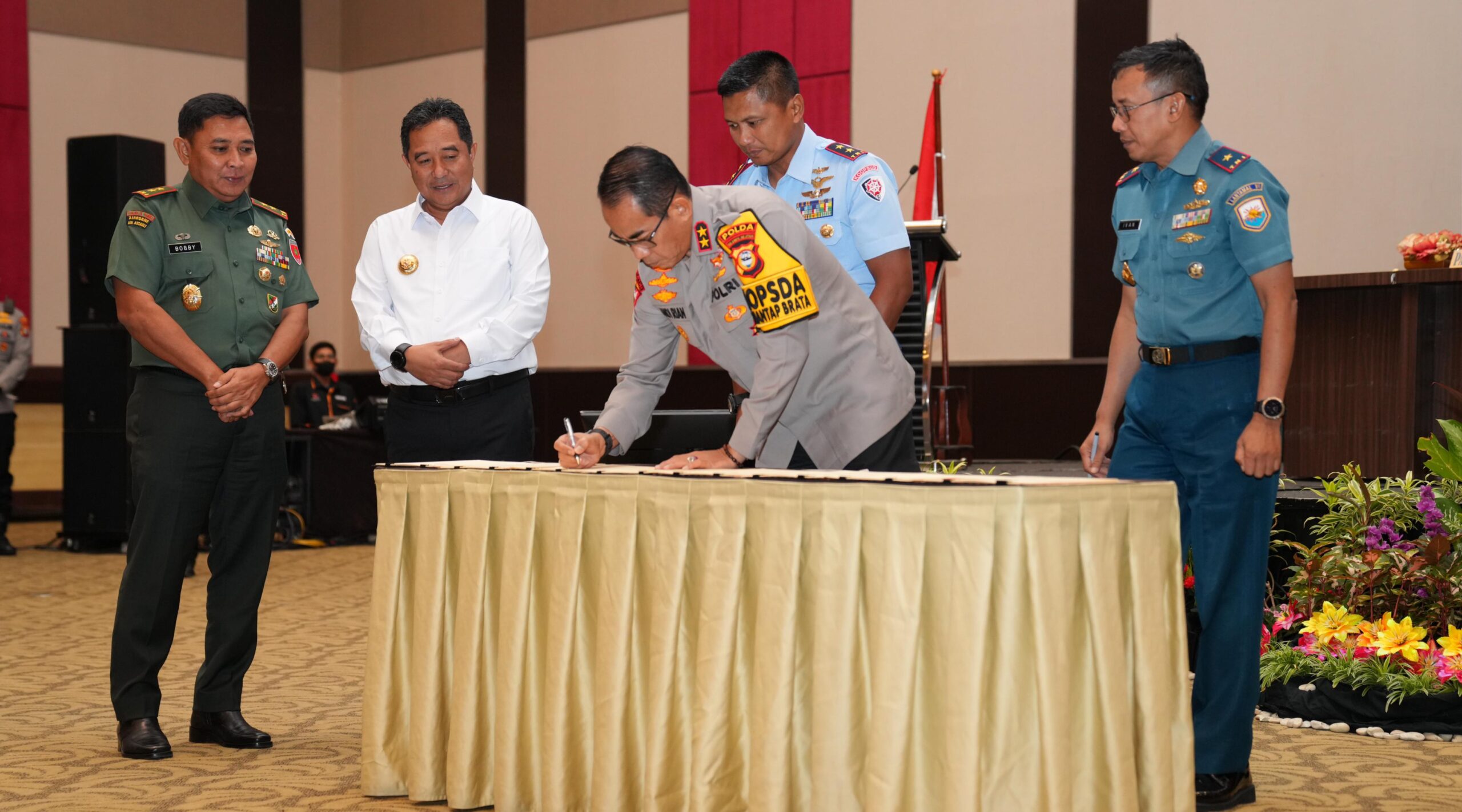 Rakor ditutup dengan penandatanganan naskah perjanjian kerjasama antara Kepolisian Daerah (Polda) Sulsel dengan TNI AU dan TNI AL. (*)