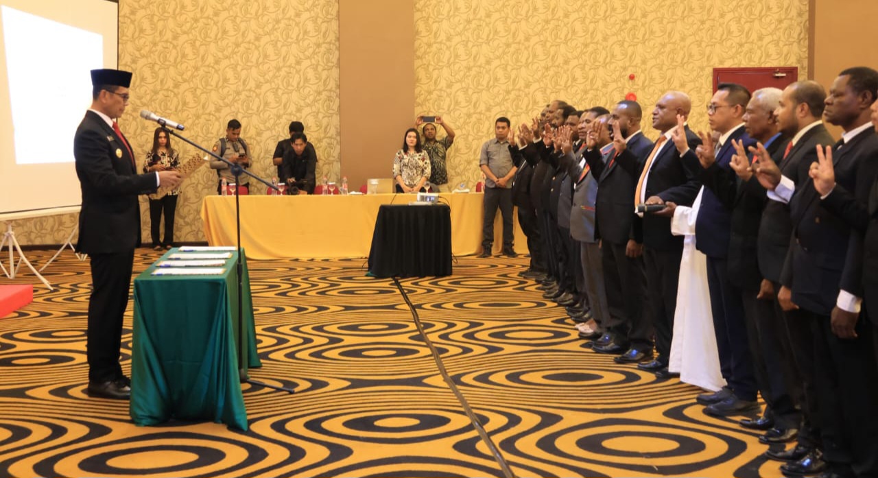 REPUBLIKNEWS.CO.ID, MERAUKE – Penjabat (Pj) Gubernur Papua Selatan Komjen Polisi (Purn) Rudy Sufahriadi melantik 20 anggota Panitia Seleksi (Pansel) Dewan Perwakilan Rakyat Kabupaten (DPRK) se-Provinsi Papua Selatan di Swiss-belHotel Merauke, Sabtu (05/10/2024).