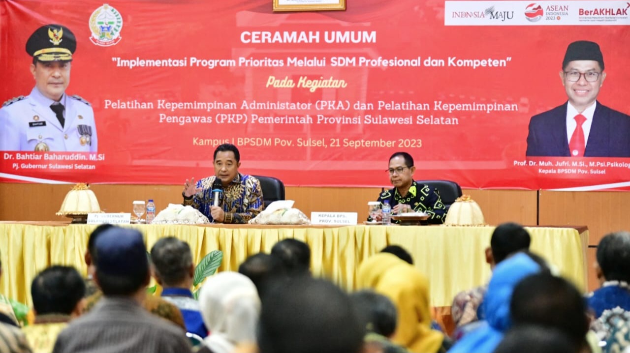 Sementara itu, Kepala BPSDM Sulsel, Prof. Dr. Muhammad Jufri menyampaikan terima kasih dan selamat datang kepada Pj Gubernur Sulsel atas kesempatannya hadir dalam acara diklat BPSDM Sulsel.