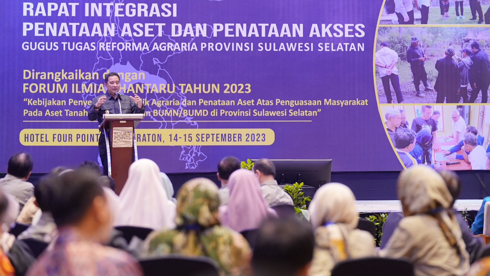 REPUBLIKNEWS.CO.ID, MAKASSAR — Penjabat Gubernur Sulawesi Selatan (Sulsel), Bahtiar Baharuddin, menghadiri Rapat Integrasi Penataan Aset dan Penataan Akses Gugus Tugas Reforma Agraria (GTRA), Kamis (14/09/2023), di Hotel Four Point by Sheraton Makassar.
