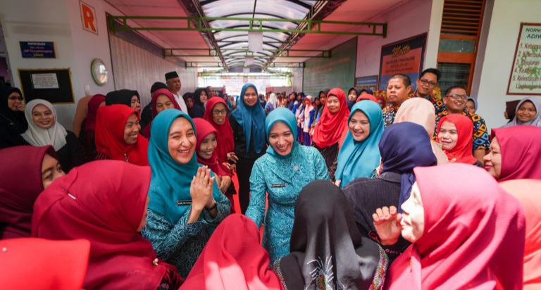 Di dua sekolah ini, Sofha Marwah disambut antusias oleh para guru dan siswa. Isteri Pj Gubernur Sulsel Bahtiar Baharuddin ini kemudian membagikan sejumlah bantuan. Diantaranya, peralatan olahraga, dispenser, Al Qur’an, bibit cabai, dan tablet tambah darah.