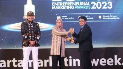 Founder & Chairman MarkPlus Corp Hermawan Kartajaya menyampaikan BUMN Entrepreneurial Marketing Awards adalah ajang penghargaan bagi para pemasar atau marketeers di kalangan BUMN maupun perusahaan subholding. Hermawan pun mengapresiasi transformasi PLN di berbagai bidang sehingga membuat bisnis perusahaaan menjadi lebih baik.