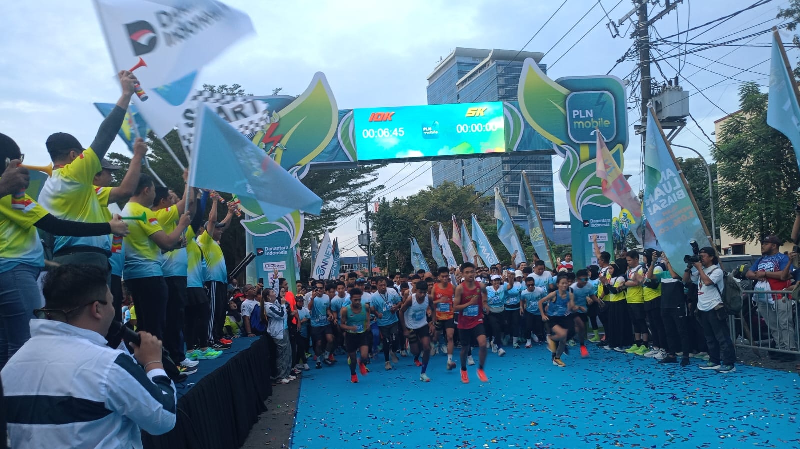 Hadir Wakil Gubernur Sulawesi Selatan Fatmawati Rusdi, Executive Vice President Niaga dan Pemasaran PT PLN (Persero), Fintje Lumembang, General Manager PT (Persero) UID Sulselrabar Edyansyah, hingga jajaran lainnya melepas pelari, di depan Front Roterdam, Makassar yang menjadi titik star dan finish.