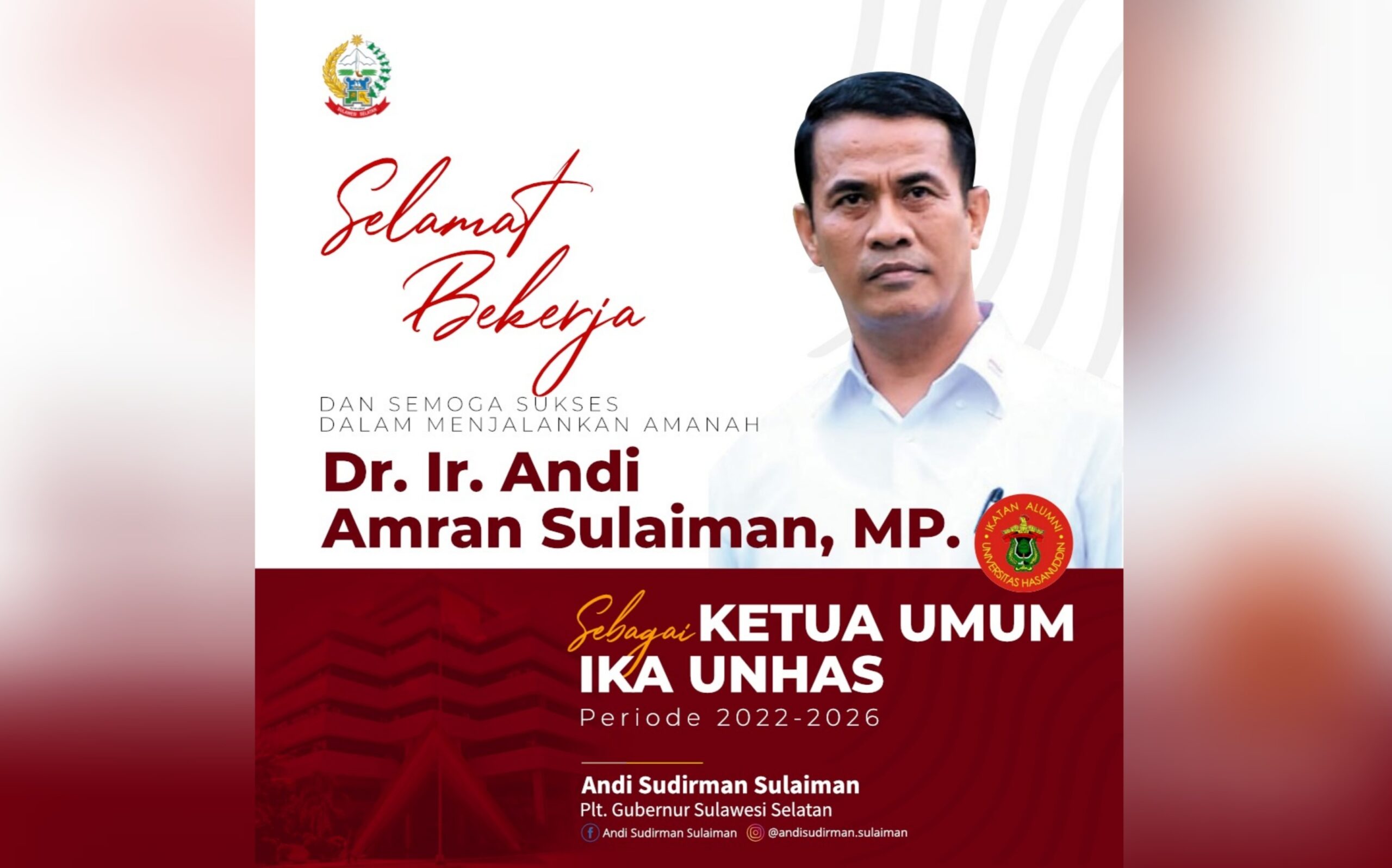 “Atas nama Pemerintah Provinsi Sulawesi Selatan dan secara pribadi kami mengucapkan selamat bekerja kepada Bapak DR. Ir. Andi Amran Sulaiman, M.P atas amanah sebagai Ketua Umum IKA Unhas Terpilih. Semoga dapat melanjutkan dan membawa peranan dalam menggandeng seluruh alumni Unhas dalam berkontribusi untuk pembangunan di Indonesia dan di Sulawesi Selatan pada khususnya,” ungkap Andi Sudirman, Minggu (06/03/2022).