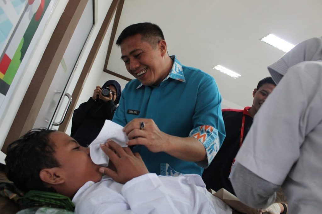 Ketua PMI Makassar, Syamsu Rizal MI turut hadir memberikan support pada para anak anak yang akan mengikuti sunatan massal tersebut.