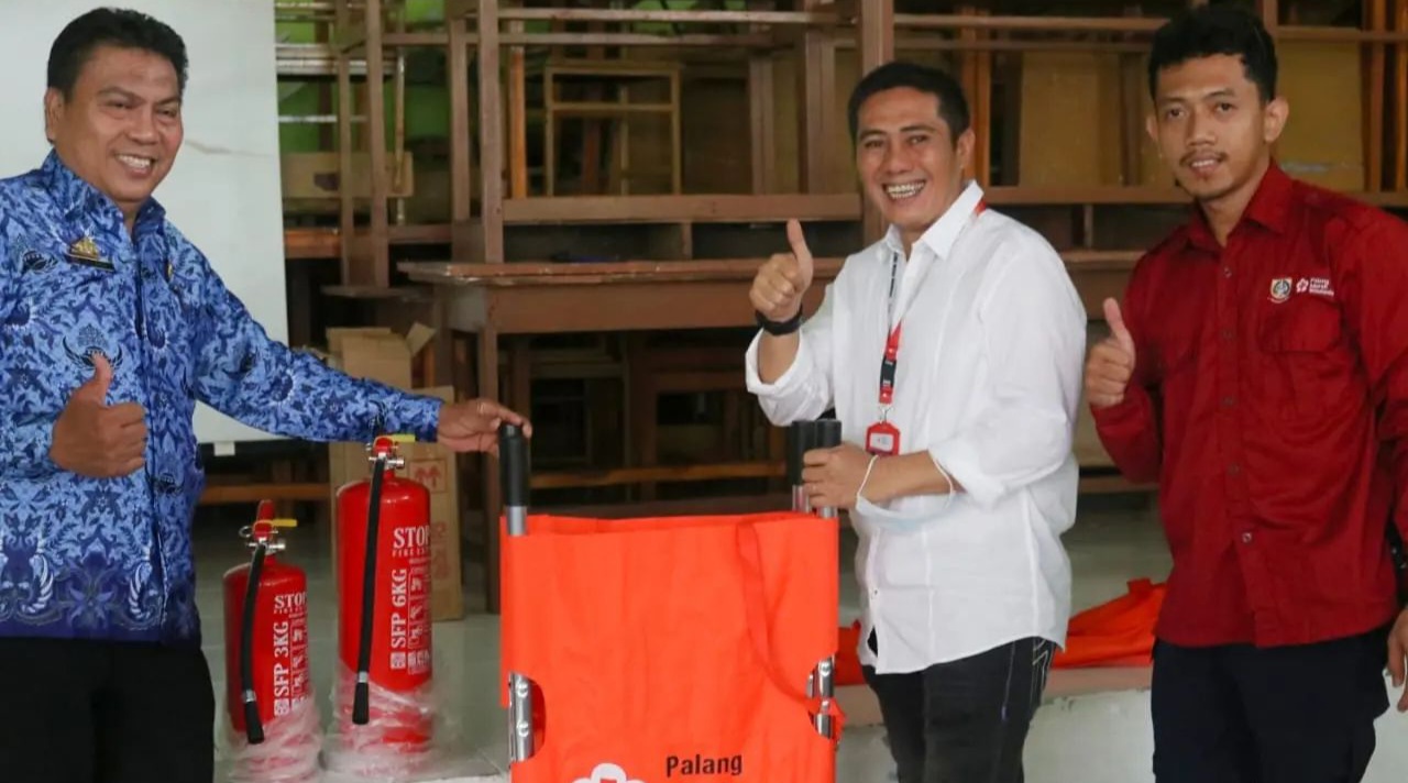 Dalam kesempatan ini, PMI Makassar menyerahkan bantuan kepada SMP 13 Makassar berupa tandu lipat, Apar 3 kg dan Apar 6 kg.
