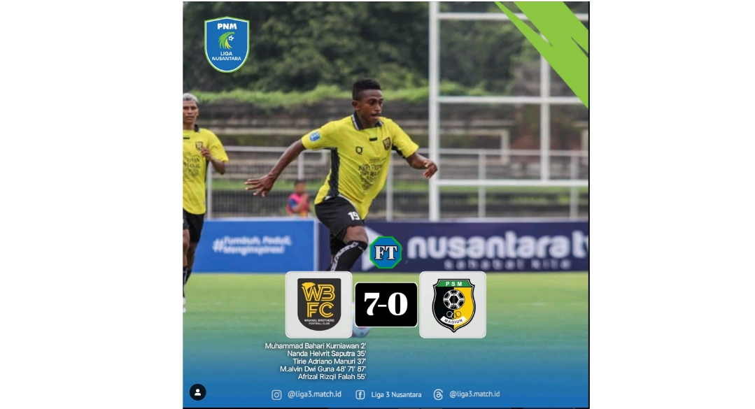 Hanya delapan menit berselang, Waanal Brothers menambah pundi-pundi golnya ke gawang PSM Madiun. Kali ini melalui aksi Afrizal Rizqil Falah.