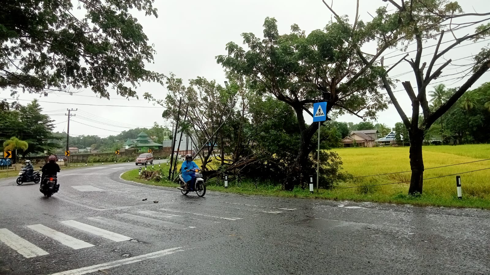 Bahkan, kabel dan tiang telkom serta lampu jalan yang terletak di jalan persatuan raya, kelurahan Biringere, Kecamatan Sinjai Utara ikut rebah akibat tangkai pohon trembesi yang terhampar saat tumbang .