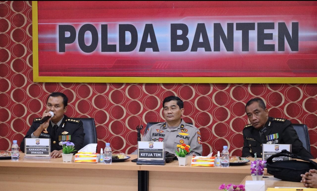 Kegiatan ini dipimpin oleh Brigjen Pol Rinto Djatmono dan Tim dari Mabes Polri, dihadiri Irwasda Polda Banten Kombes Pol Eko Kristianto, Karoops Polda Banten Kombes Pol Amiludin Roemtaat dan para Kasatgas Polda Banten.