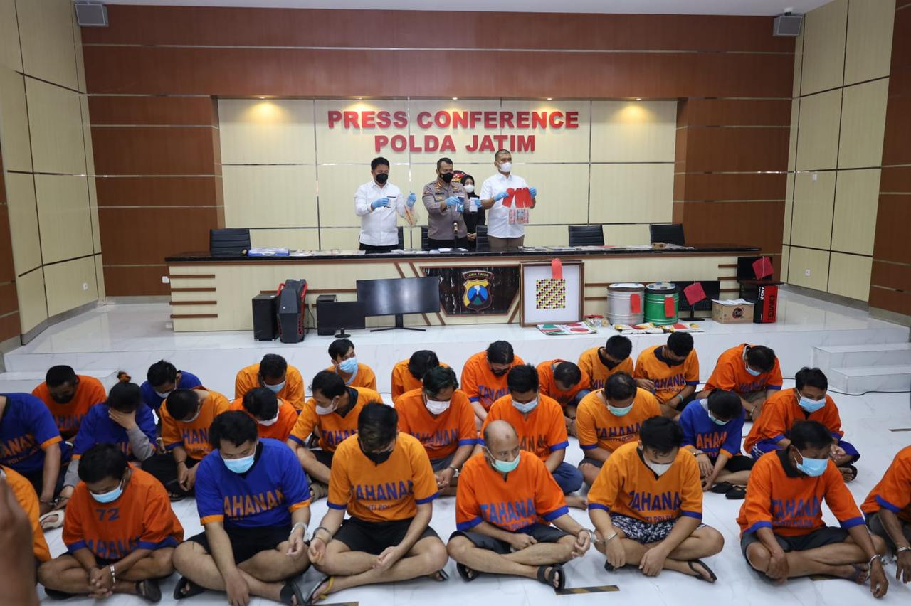 Hal itu disampaikan Kabid Humas Polda Jatim Kombes Pol Dirmanto, bersama Dirkrimsus Kombes Pol Farman dan Dirkrimum Kombes Pol Totok Suharyanto, di ruang pres rilis Bid Humas Polda Jatim.