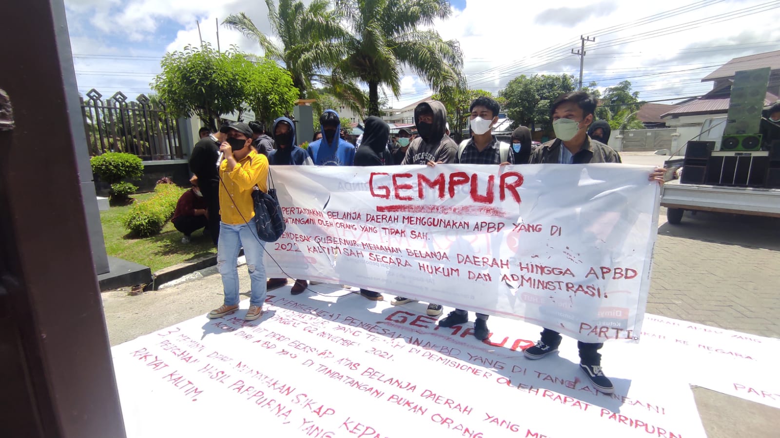 “Keputusan dari rapat Paripurna ke 25 kan jelas pemberhentian Makmur HAPK dari Jabatan Ketua DPRD Kaltim dan menetapkan Hasanuddin Mas’ud sebagai penggantinya, tapi malah mengesahkan anggaran murni 2022. Padahal secara hukum kedudukannya itu tidak sah di dalam Gedung DPRD,” jelas Korlap Gempur Kaltim Roselin, saat ditemui, Selasa (8/3/2022).