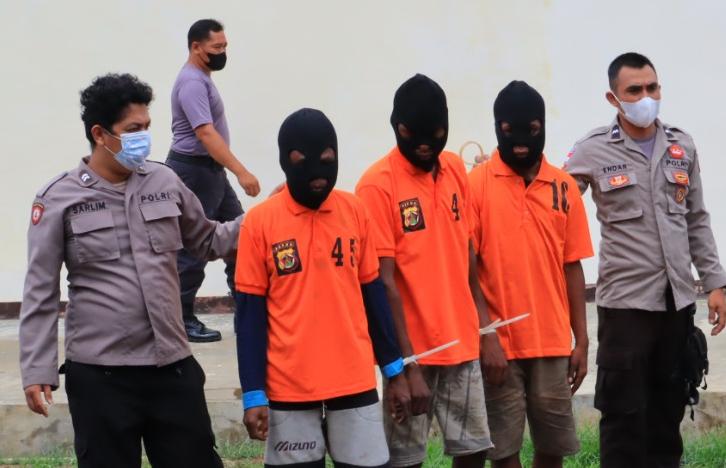 Tiga pelaku pembacokan berinisial AW, ET, AW. Mereka ini ditangkap di dua tempat berbeda yakni, di Jalan Mangga II Kelurahan Kelapa Lima dan di Serapuh, Distrik Semangga Merauke. Sementara satu pelaku lagi masih dalam pengejaran petugas.