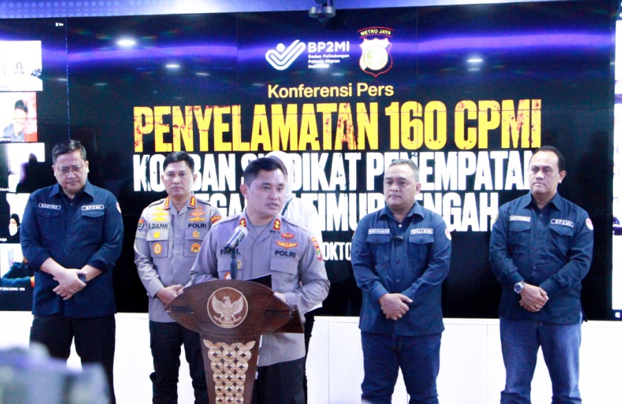 REPUBLIKNEWS.CO.ID, JAKARTA — Kepala Badan Pelindungan Pekerja Migran Indonesia (BP2MI) Benny Rhamdani, bersama Kapolda Metro Jaya Irjen Pol Mohammad Fadil Imran, melakukan Konferensi Pers terkait Penyelamatan 160 Calon Pekerja Migran Indonesia (CPMI) korban sindikat penempatan ilegal ke Timur Tengah. Selasa ( 25/10/2022).