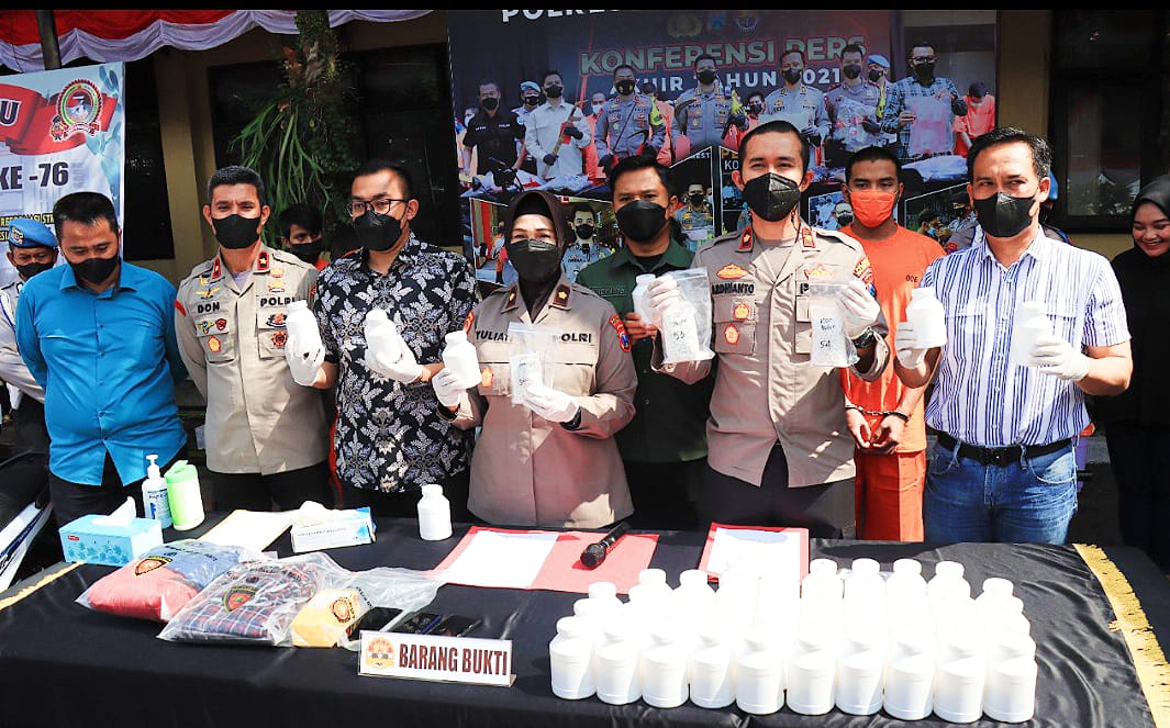 “Atas perbuatan nya ini tersangka kami terapkan pasal 197 atau 196 UU RI No.36 Tahun 2009 tentang Kesehatan dengan ancaman kurungan penjara selama 10 – 15 tahun dan denda sebesar 1 – 1,5 Miliar Rupiah,” imbuh Kompol Yanuar Rizal.