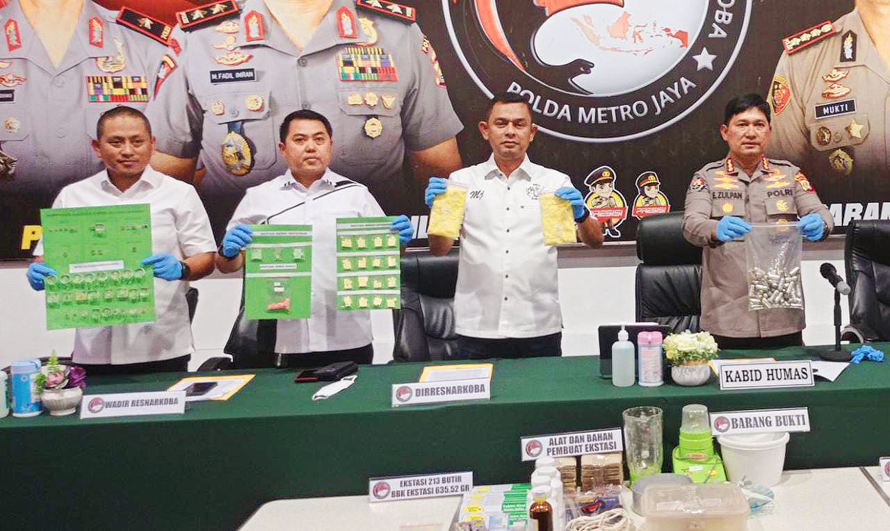 Dikesempatan yang sama, Diresnarkoba Polda Metro Jaya Kombes Pol Mukti Juharsa, menjelaskan ini murni diproduksi sendiri oleh pelaku. Tersangka berperan sebagai pembuat atau memproduksi dan kurir narkotika jenis ekstasi.