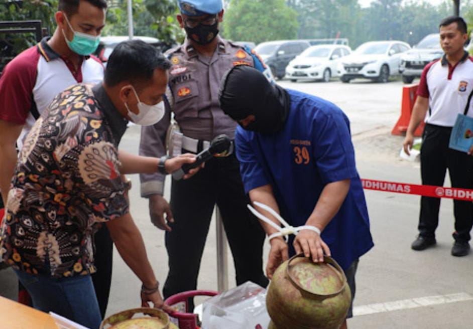 Modus pelaku terbilang unik, yakni dengan cara memindahkan gas elpiji ukuran 3 Kg yang disubsidi oleh pemerintah ke tabung gas LPG ukuran 12 Kg non Subsidi.