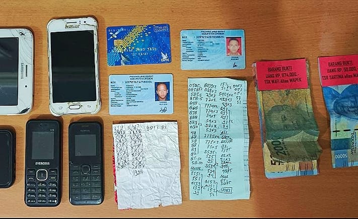 Dari penangkapan tersebut kami berhasil mengamankan barang bukti berupa 5 (lima) Unit Handphone, 1 (satu) Lembar kertas rekapan nomor pasangan Togel, 1 (satu) ATM BRI