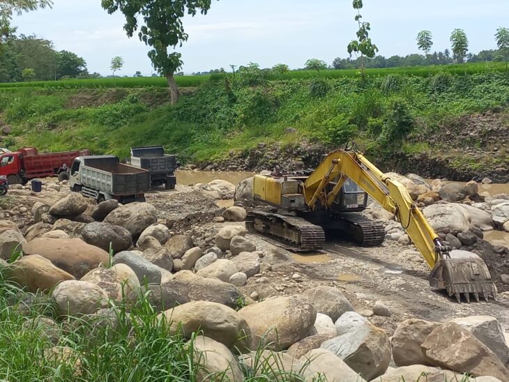 Ahmad khawatir dengan adanya aktivitas galian, tanah sawahnya akan amblas dan tergerus aliran sungai jika suatu saat debit air sungai deras.