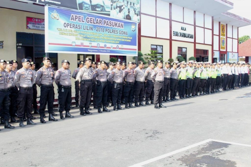 REPUBLIKNEWS.CO.ID, GOWA — Bertempat di halaman kantor Polres Gowa, pada Jumat (21/12) pagi, jajaran Anggota Polisi melaksanakan Apel Gelar Pasukan Operasi Lilin 2018, dalam rangka pengamanan Hari Raya Natal 2018 dan Tahun Baru 2019.