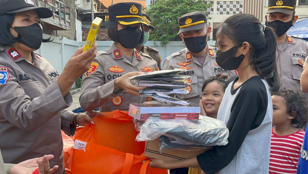 REPUBLIKNEWS.CO.ID, JAKARTA – Kapolres Metro Jakarta Barat Kombes Pol Pasma Royce memberikan bantuan kepada 23 anak sekolah korban kebakaran di jalan sawah lio jembatan lima tambora jakarta barat, Senin, 1/8/2022.