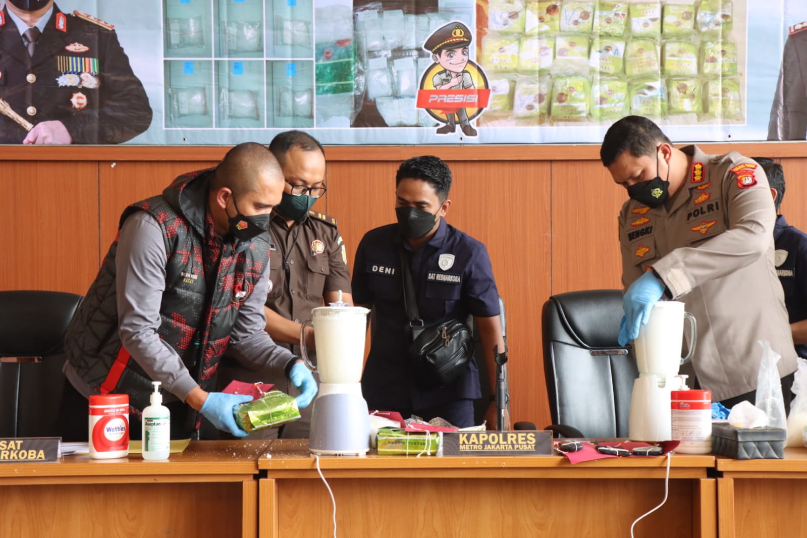 Press Confrence dipimpin Kapolres Metro Jakarta Pusat AKBP Hengki Haryadi, S.I.K., M.H. didampingi oleh Kasat Resnarkoba AKBP Indrawienny Panjiyoga, S.H., S.I.K. dan Kasi Humas AKP Sam Suharto, S.H., M.H.
