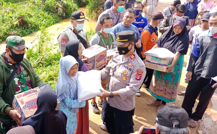 Melihat situasi tersebut, Kapolres Lebak dengan sigap langsung memberikan bantuan sembako kepada korban bencana banjir serta yang rumahnya tertimpa longsor di Kampung Cicarucub Desa Neglasari.