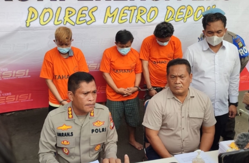 Kapolres Metro Depok, Kombes Pol Imran Edwin Siregar mengatakan pihaknya menangkap tiga pelaku. Mereka masing-masing laki-laki berinisial AM dan RG, satu lainnya perempuan inisial N.