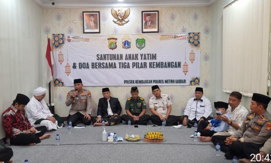 REPUBLIKNEWS.CO.ID, JAKARTA — Polsek Kembangan Jakarta Barat bersama Tokoh Agama, Tokoh Pemuda dan 3 Pilar mengadakan santunan anak yatim dan doa bersama, Rabu (25/05/2022).