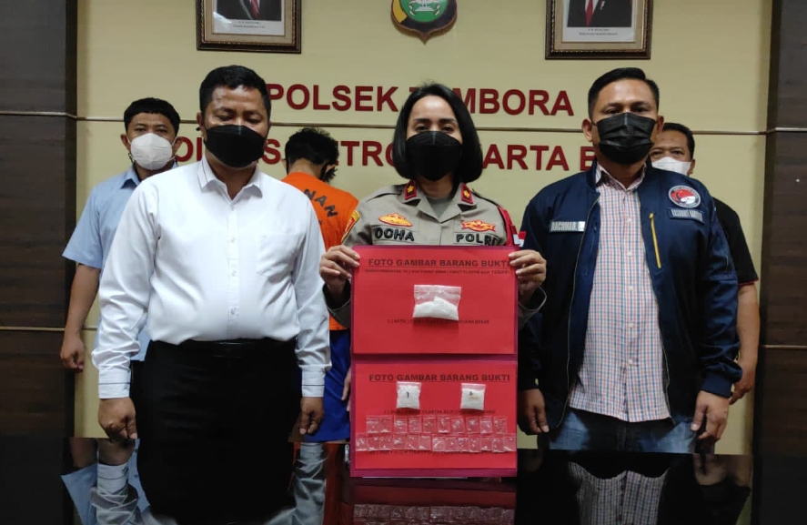 “Kami berhasil mengamankan ke dua pelaku berikut barang bukti narkotika jenis sabu sebanyak 1 paket klip besar, 2 paket klip ukuran sedang dan 23 paket klip ukuran kecil dengan total berat brutto 43,34 gram,” jelas Kapolsek Tambora Kompol Rosana Albertina Labobar, saat Press Confrence, Selasa (08/03/2022).