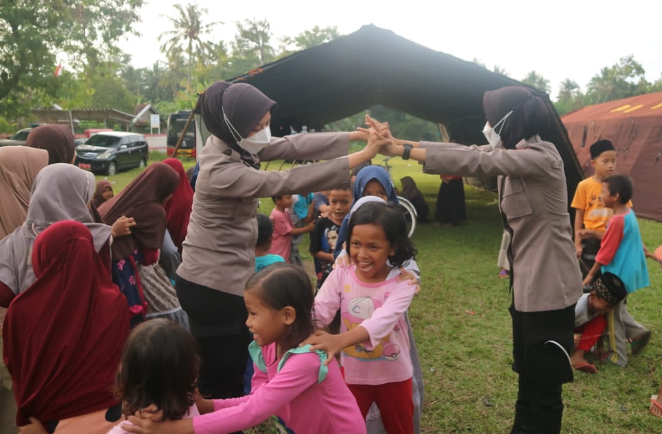 Kabid Humas Polda Banten Kombes Pol Shinto Silitonga menyampaikan bahwa kegiatan berbagi keceriaan ini sebagai bentuk dukungan untuk anak-anak yang bermukim di lokasi gempa.
