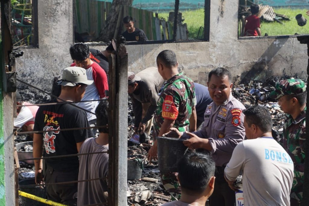Melihat kondisi tersebut Kapolres Polman, Akbp Muhammad Rifai, terjun langsung untuk membantu masyarakat mengangkat serpihan maupun puing-puing bahan bangunan yang telah ludes terbakar, Minggu (19/01/2020).