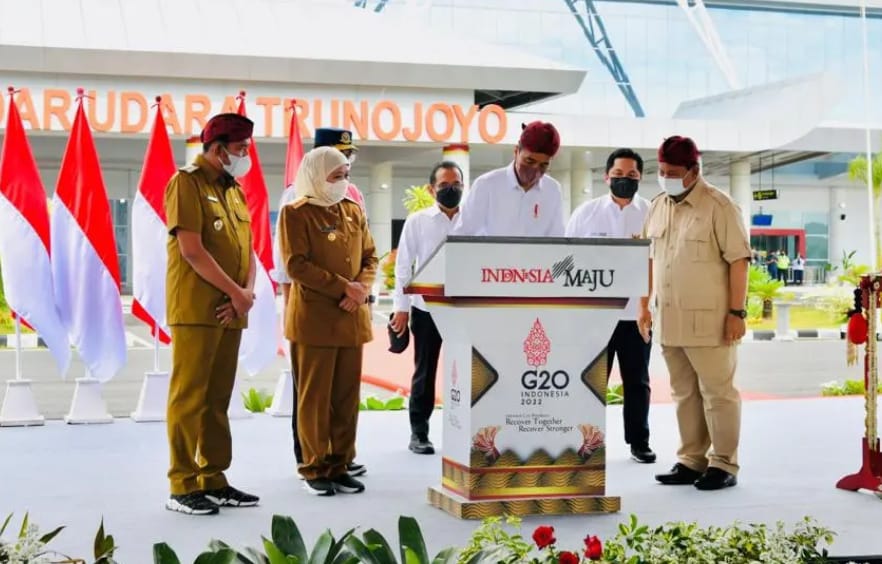 REPUBLIKNEWS.CO.ID, SUMENEP — Presiden Joko Widodo meresmikan Bandar Udara Trunojoyo di Kabupaten Sumenep, dalam kunjungan kerjanya ke Provinsi Jawa Timur, pada Rabu (20/04/2022). Dalam sambutannya, Presiden menyebut peran sentral Bandara tersebut untuk melayani kebutuhan transportasi masyarakat di Pulau Madura dan pulau-pulau lainnya di sekitar Madura.
